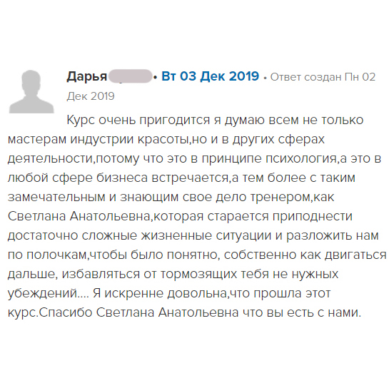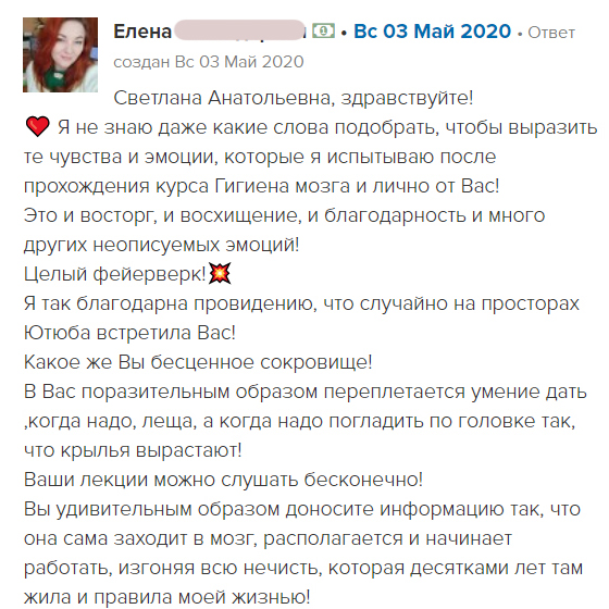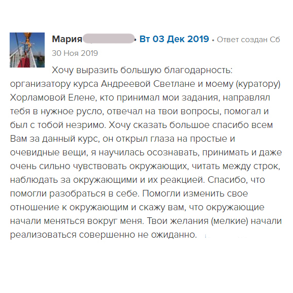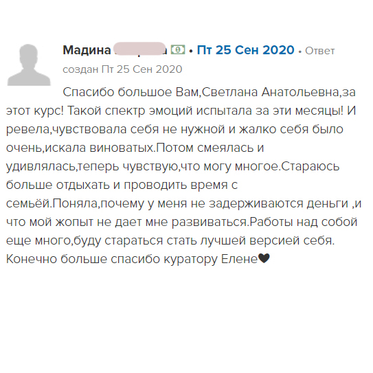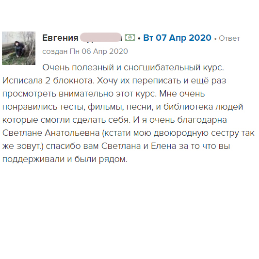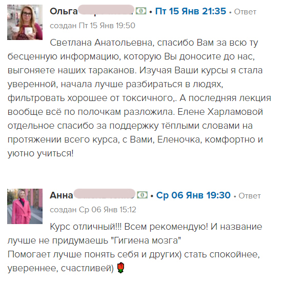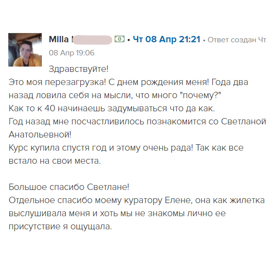 6 индивидуальных разборов со Светланой по результатам каждого модуля